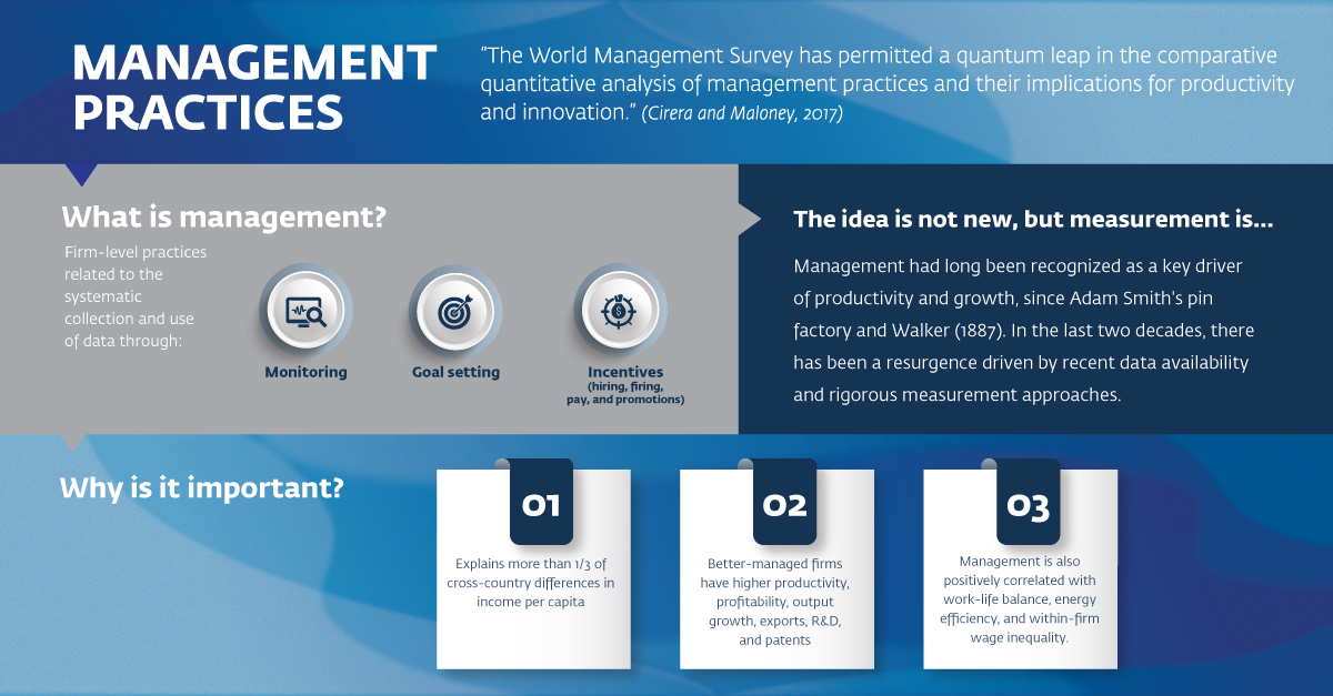 With expert insights from some of the most recognized academic institutions, IFC aims to push the knowledge frontier on measuring management and organizational practices across various sectors of economic activity and linking these to firm performance, and ultimately, sustainable economic growth.