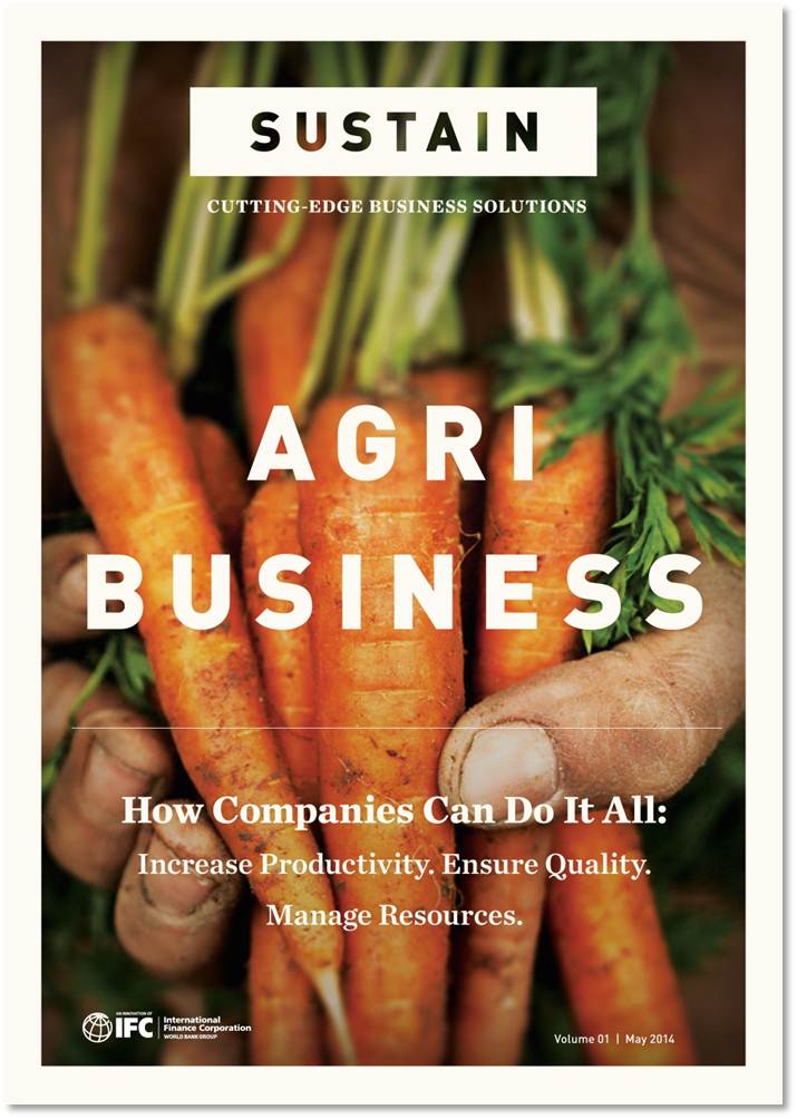 How can companies across the world achieve stronger performance while addressing sustainability challenges? How can they learn from each other? And how can IFC help by leveraging its unique vantage point at the intersection of business and development? SUSTAIN addresses these questions by offering a global platform for a conversation on cutting-edge business solutions among thought leaders and pioneers from the private sector, international organizations, academia, and the World Bank Group. It features interviews with sustainability heads and experts in companies like Bayer, Ecom, Coca-Cola, IBM, Marks and Spencer, Mars, and Metro Group. It also includes opeds and contributions from the Financial Times, the Vodafone Foundation, the UN, the University of California at Davis, the World Economic Forum, the World Cocoa Foundation and others.