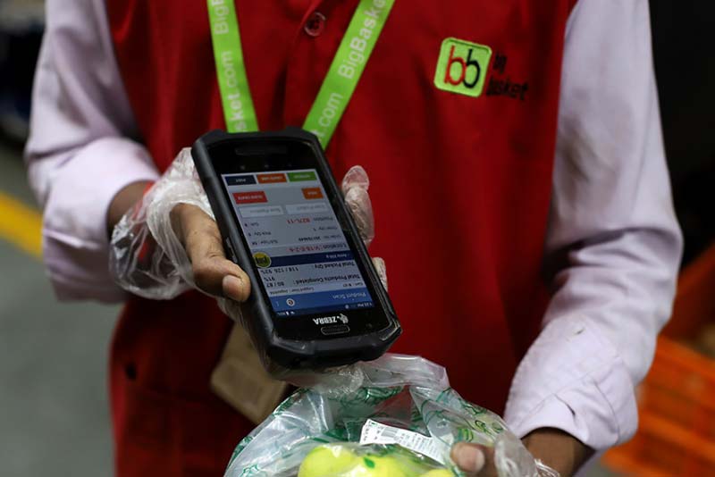 At a bustling distribution center in India’s southern state of Karnataka, employees of the country’s largest online grocer, BigBasket, sort crates of fresh cauliflowers, tomatoes, limes, and leafy greens.