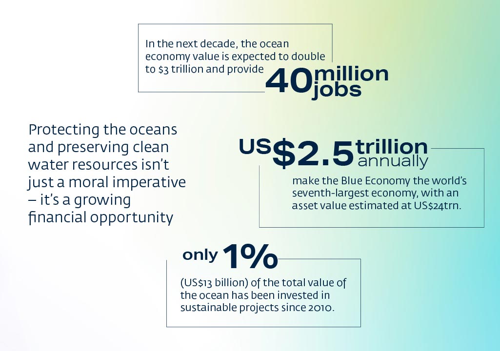 There is a recent wave of “ocean-friendly” financial solutions working to support the blue economy. Blue bonds, to name just one, are innovative instruments with huge potential to regenerate ocean health, preserve coastal areas, and improve how we use water on land such as rivers, irrigation, and wastewater. While the blue finance market is still in its infancy, it is starting to flourish. But can we move fast enough?