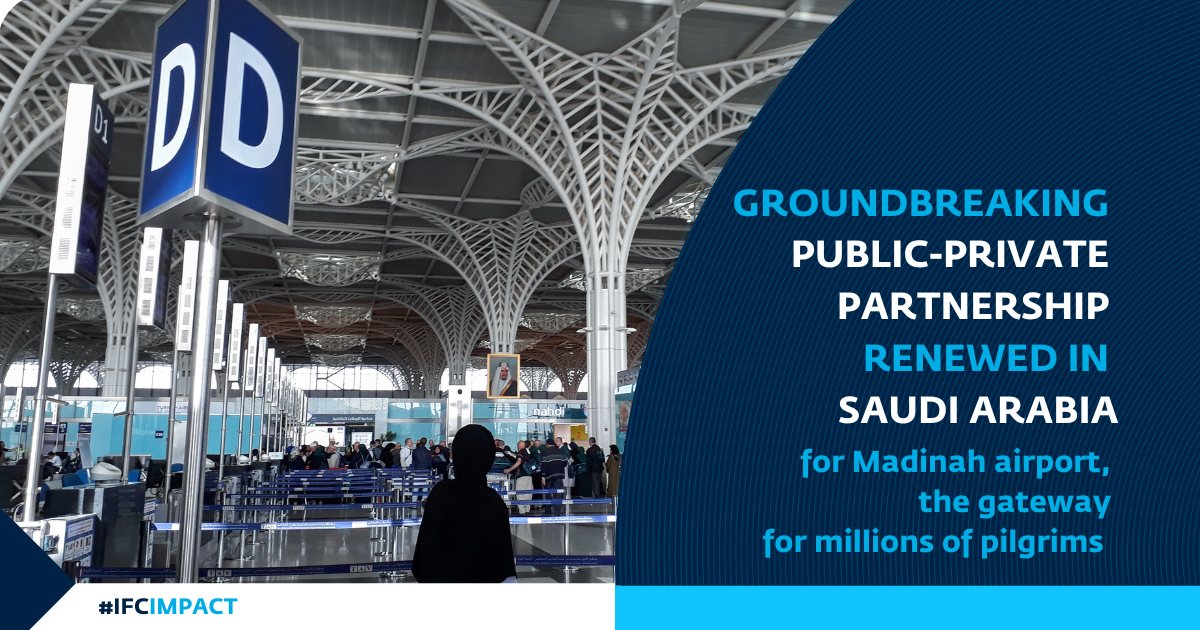 في السابق، قامت مؤسسة التمويل الدولية بدور المستشار الرئيسي الأصلي في إعداد اتفاقية الشراكة بين القطاعين العام والخاص لتطوير وتشغيل مطار الأمير محمد بن عبد العزيز الدولي في المدينة المنورة لصالح الهيئة العامة للطيران المدني بالمملكة العربية السعودية، حيث فاز كونسورتيوم تقوده مجموعة الراجحي القابضة عام 2011 بالاتفاق المبدئي لمدة 25 عاماً - وهو الأول من نوعه في دول مجلس التعاون الخليجي.