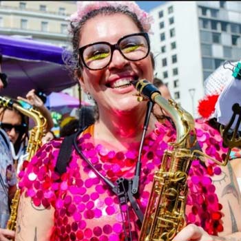 Renata Rodrigues is a journalist and a social scientist that founded in 2015 a group named Bloco Mulheres Rodadas, the first feminist bloco in Rio de Janeiro. Since then, she and the bloco took part in several initiatives and campaigns to fight gender violence, racism, homophobia in Carnival. The bloco also musically and politically attracts and trains hundreds of women every year, encouraging their autonomy and independence.