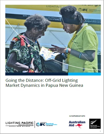 It’s in this environment that IFC’s Lighting Papua New Guinea program has been able to demonstrate impact by developing a market for quality verified solar products. Six years ago, only two percent of the population used any type of solar product and relied on firewood, kerosene and other products, harmful to people and the environment. It was a time when cellphone penetration was growing rapidly, but the means to charge those phones was lagging. Now kerosene has been usurped, and there’s a prevalence of generic offerings, battery powered torches and lanterns, alongside quality-verified off-grid solar products – many with an ability to charge a phone.
