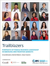 Part of IFC’s Women on Boards and in Business Leadership Program, the publication features the inspirational personal stories of 20 female business leaders and their advice to other female professionals aspiring to top positions. It highlights the positive impact of their leadership on private sector development in emerging and frontier markets. It also provides key gender facts and data on the status of women on boards and in business leadership around the world.