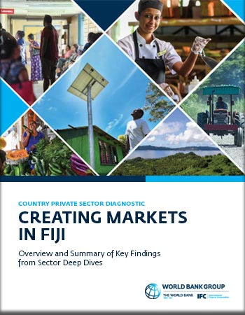 This Country Private Sector Diagnostic (CPSD) highlights opportunities for Fiji to take concrete steps toward future change. To build back better Fiji needs a four-pronged strategy: unlocking new sources of growth beyond tourism, strengthening economic and climate resilience, leveraging the nation’s potential as an economic hub in the Pacific region, and creating inclusive job opportunities. This CPSD identifies outsourcing services, health care and agri-logistics as areas with high potential to help create employment opportunities, including climate resilient jobs, while diversifying the economy and driving resilient economic growth.
