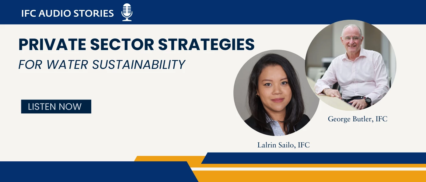 This World Water Day, IFC Audio Stories dives into the crucial topic of water. Host Lindy Mtongana is joined by IFC's Lalrin Sailo and George Butler to explore IFC's work in supporting emerging markets in meeting their sustainable development goals for water and sanitation. Learn about the role of the private sector in water management and the importance of valuing water properly in light of evolving climate change impacts.