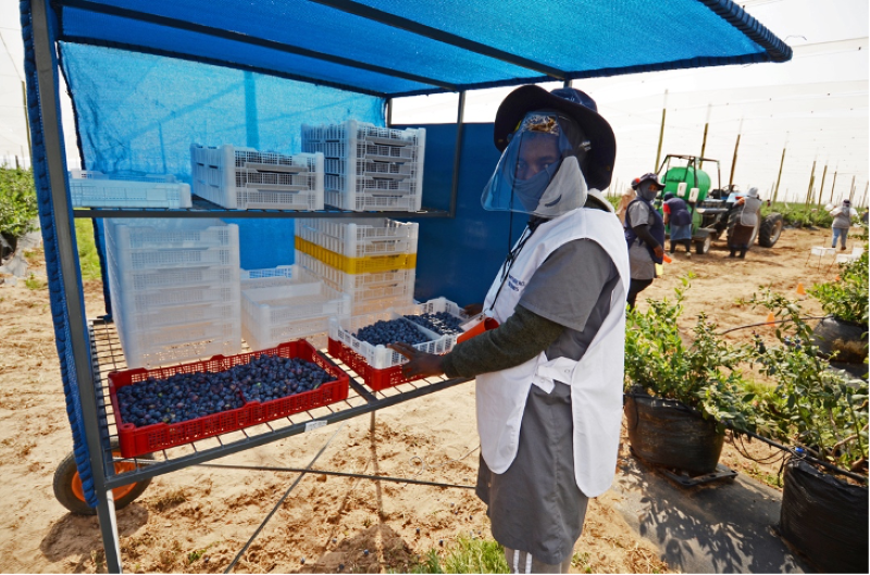 South Africa's Western Cape Department of Agriculture estimates that the country's blueberry sector employs 5,700 people. The fruit is an increasingly important product for South Africa, with production climbing to 18,000 metric tons in 2019/20 from 11,000 the year before, according to the South Africa Berry Producers Association.