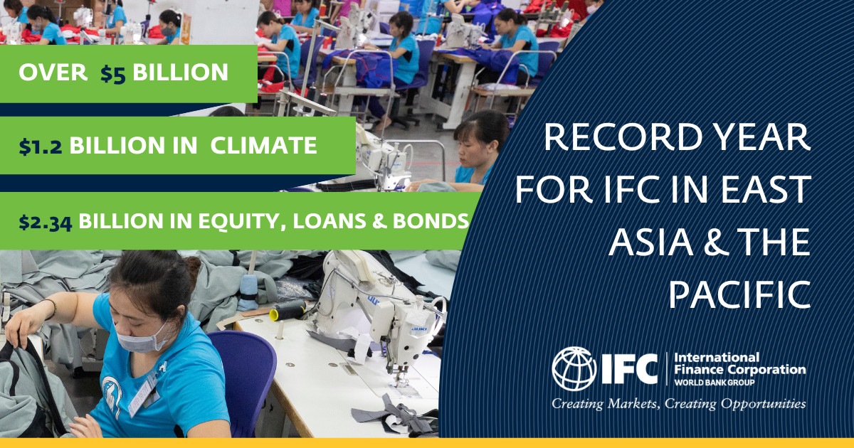 IFC's commitments included $1.2 billion to support climate projects across the East Asia and the Pacific region, including funding for innovative green and blue transactions and also for renewable energy and climate-smart urban infrastructure projects.