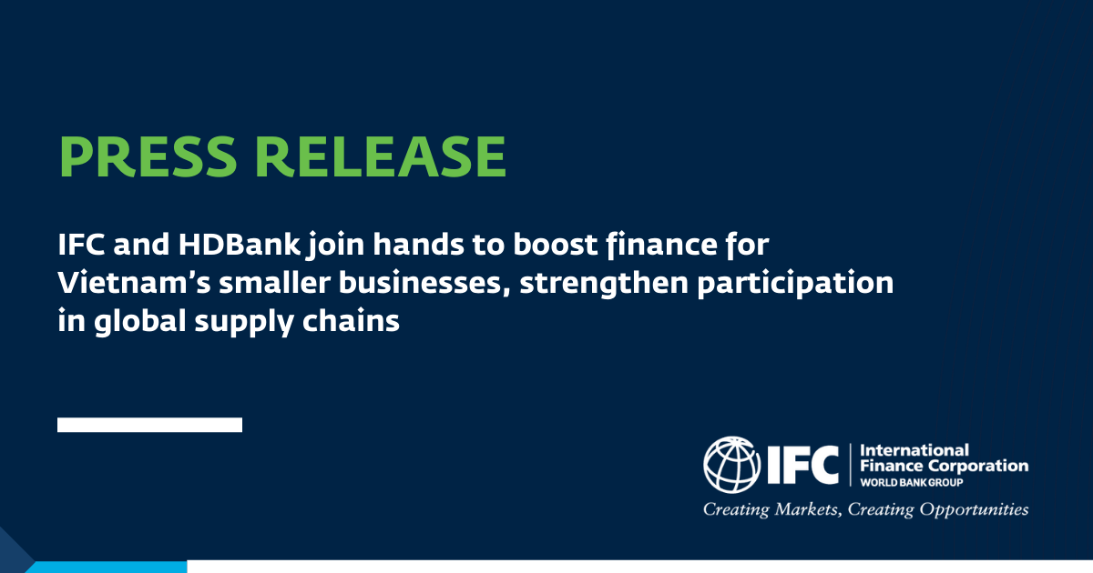 "Small and medium enterprises are the backbone of Vietnam's economy and are essential to the country's ambition to become a regional manufacturing hub," said Stephanie von Friedeburg, IFC's Senior Vice President, Operations. "Our support to local financial institutions like HDBank will help SMEs in Vietnam link into global supply chains and access opportunities to grow and create jobs."