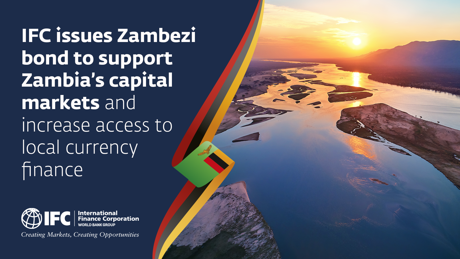 The five-year, amortizing "Zambezi" bond—which was oversubscribed—was issued as a floating rate note, paying a coupon based on the 182-day Zambian Treasury bill yield minus 50 basis points. Proceeds will support IFC's local currency investment program in Zambia.