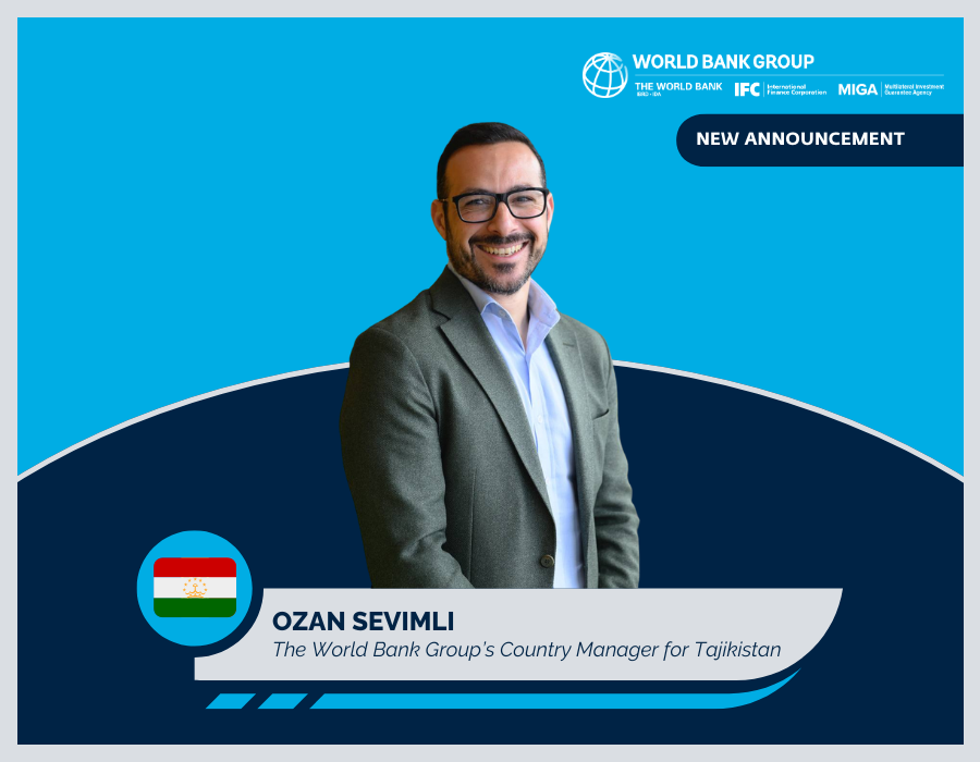 DUSHANBE, July 1, 2024 – Starting today, Ozan Sevimli becomes the World Bank Group Country Manager for Tajikistan, a position that will unify country-level leadership across the institution to better support Tajikistan's public and private sector priorities. Mr. Sevimli will lead the programs of the International Bank for Reconstruction and Development/International Development Association, International Finance Corporation, and Multilateral Investment Guarantee Agency in Tajikistan, providing a single point of contact for access to the full breadth of World Bank Group products and services. This will enhance the institutions' ability to address global challenges, and drive development with speed, efficiency, and impact.