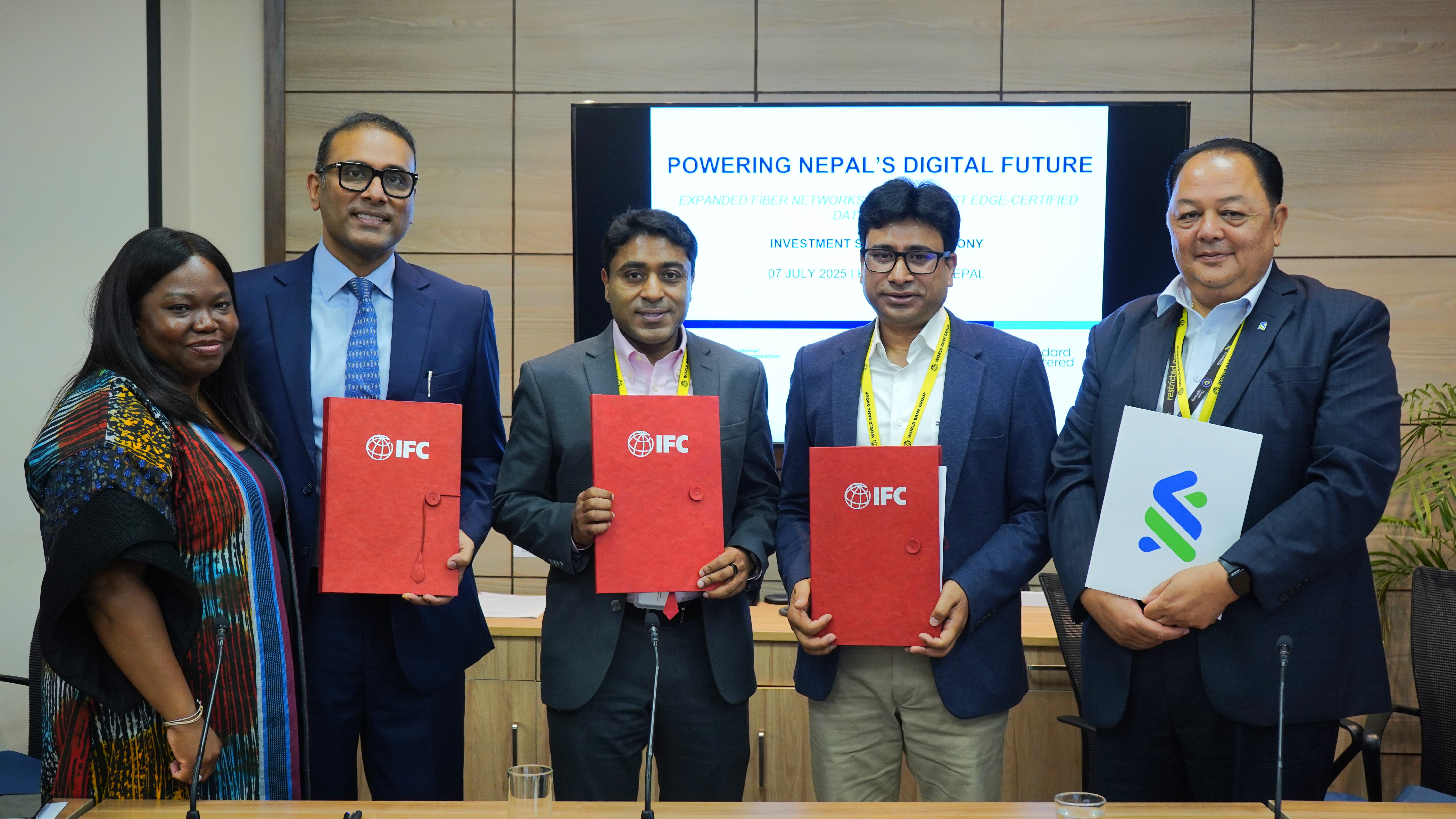 Kathmandu, July 07, 2025 — In a strategic move to expanding Nepal’s digital infrastructure and unlock its full economic potential, IFC, in partnership with Standard Chartered Bank Nepal Limited (SCBNL), has committed $29 million to WorldLink Communications Limited and its subsidiary Data World Limited. The investment aims to grow Nepal’s fiber networks and develop innovative data centers across the country to help bridge the digital divide and drive inclusive development.