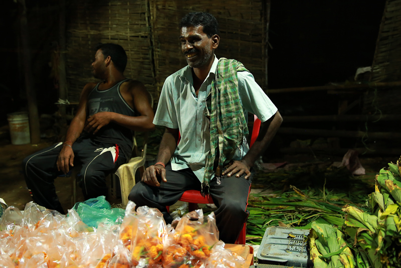 Laxman Das sells his flowers at a local street market in Bhubaneswar. © Samarendra Dash/IFC