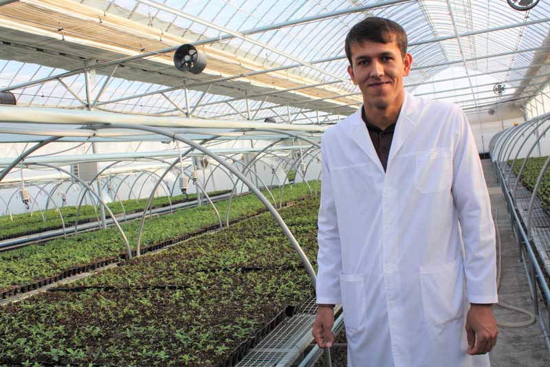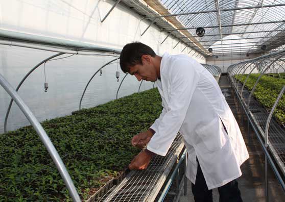 As researcher Azim Marufov points out fruit tree seedlings growing in a sprawling greenhouse in Samarkand, Uzbekistan, he speaks of them with almost paternal concern. "They are like my babies," says the 26-year-old scientist.