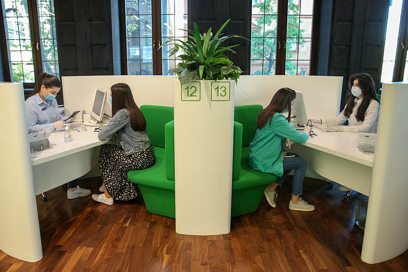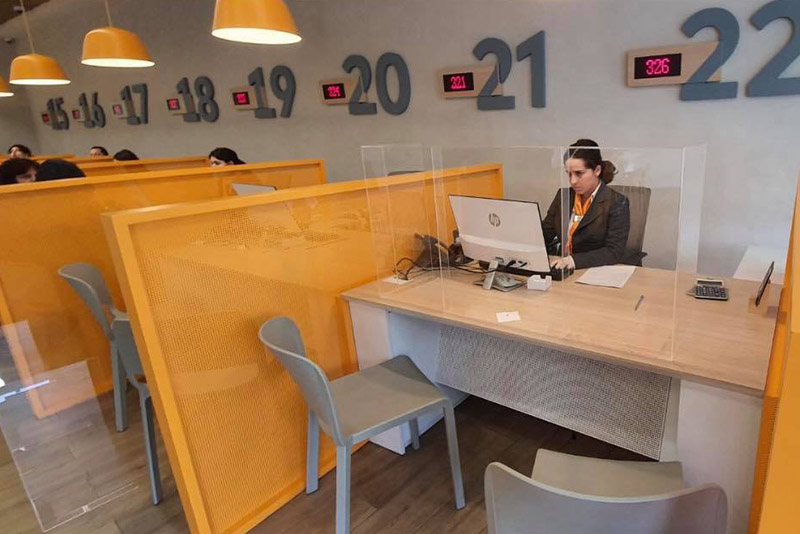 Adjustments to workspaces at Bank of Georgia insure the health of customers and employees. Photo: Vakhtang Alania