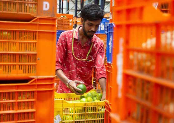 At a bustling distribution center in India’s southern state of Karnataka, employees of the country’s largest online grocer, BigBasket, sort crates of fresh cauliflowers, tomatoes, limes, and leafy greens.