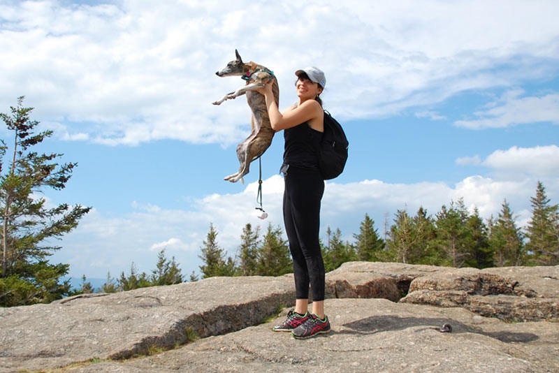 Photo: Recreating an iconic moment from The Lion King with the dog she shares with her boyfriend (Muffin) while hiking in the White Mountains in New Hampshire. Photo credit @ Yannick Paquay