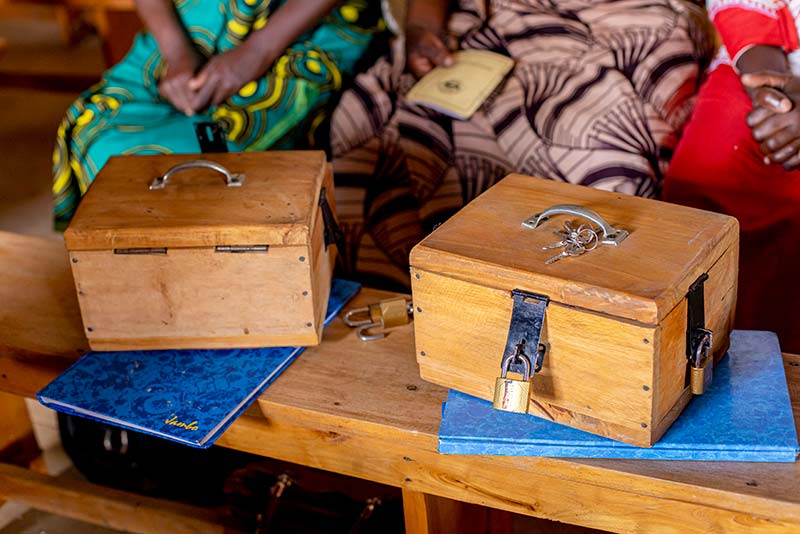 The women’s savings group uses lockboxes to safeguard their members’ money. Photo by: Simeon Uwiringiyeyesu/IFC