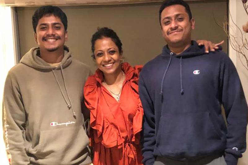 Kasturi Wilson and her two sons, Amrith Wilson (left) and Ashvindh Wilson (right). Photo: Courtesy of Kasturi Chellaraja Wilson
