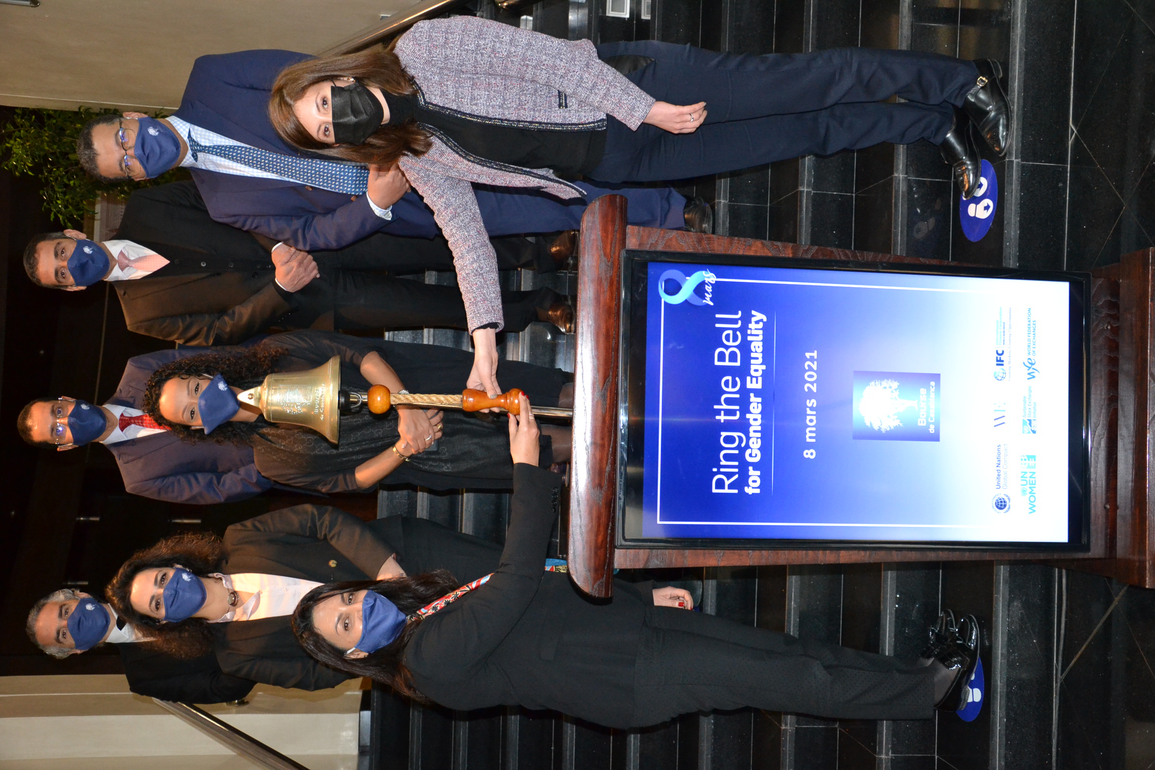 Casablanca, Maroc, 8 mars 2021—À l'occasion de la Journée Internationale des Droits des Femmes, la Société financière internationale (IFC), membre du Groupe de la Banque mondiale, ONU Femmes, l'entité des Nations Unies pour l'égalité entre les sexes et l'autonomisation des femmes, et la Bourse de Casablanca ont pris part, aux côtés de 99 autres Bourses à travers le monde, à la 7ème édition de l'initiative Ring the Bell for Gender Equality qui vise à promouvoir la participation des femmes en entreprise.