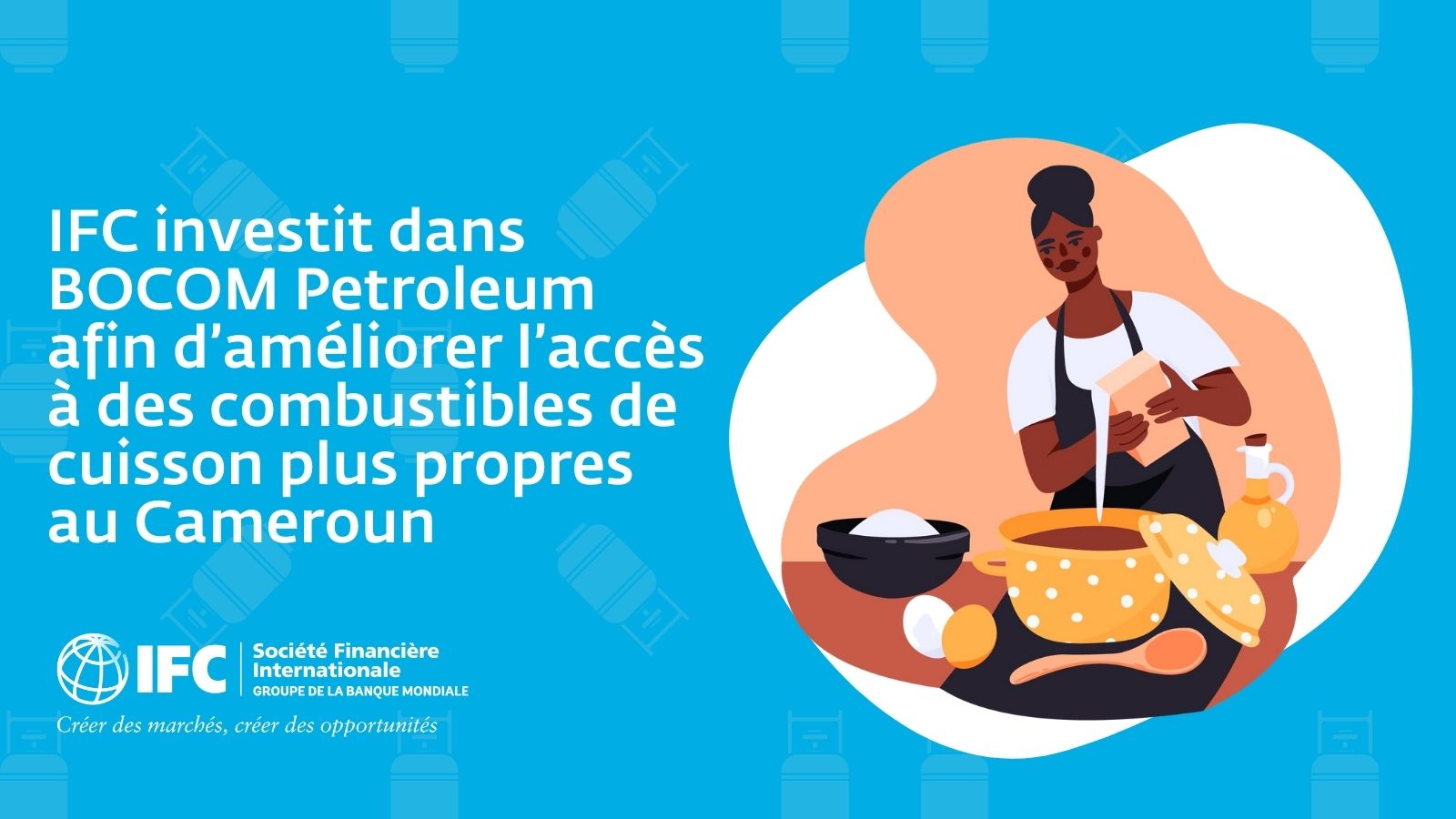« Nous sommes fiers de collaborer avec BOCOM afin de promouvoir l'accès à des combustibles moins polluants et plus sûrs, tout en soutenant la transition énergétique du Cameroun », a indiqué Sylvain Kakou, responsable pays d'IFC pour le Cameroun. « Notre partenariat contribuera aussi à promouvoir l'inclusion économique dans les régions du pays qui manquent d'investissements privés, notamment en aidant à créer des emplois et à renforcer l'économie locale. »