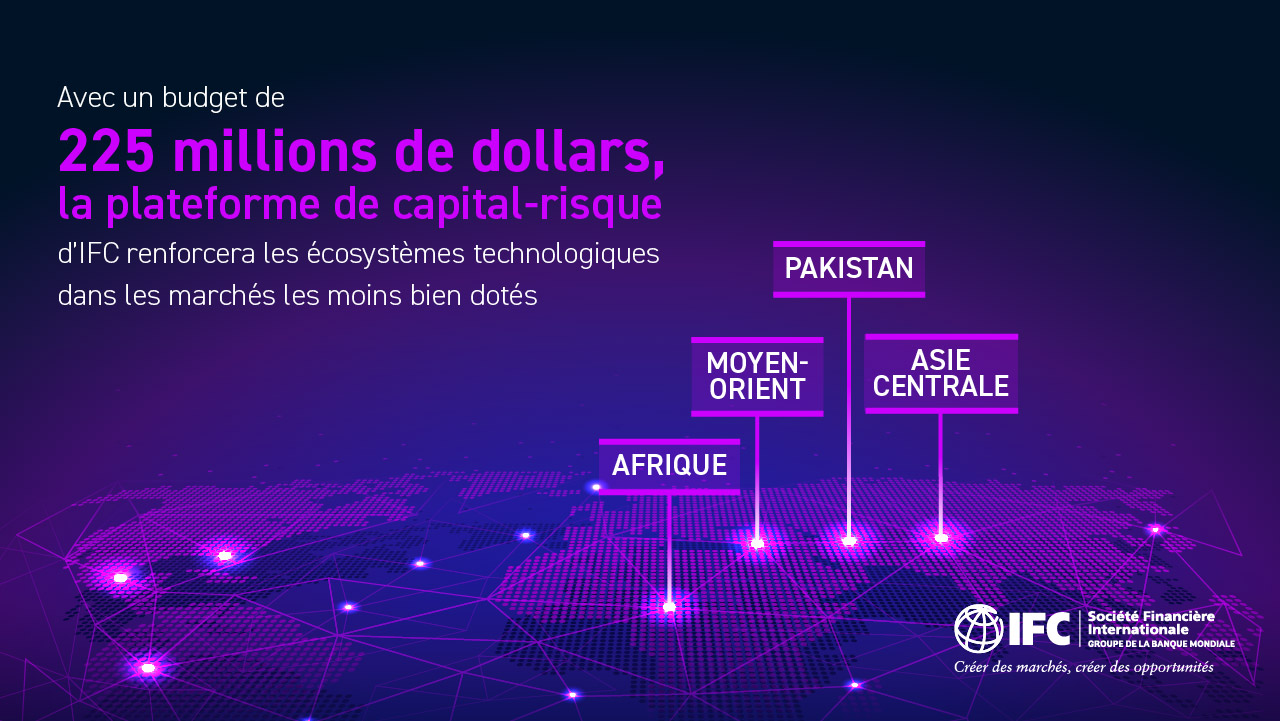 Washington, 15 novembre 2022 – Afin de contribuer au développement de l'économie numérique en Afrique, au Moyen-Orient, en Asie centrale et au Pakistan, IFC vient de lancer une nouvelle plateforme dotée de 225 millions de dollars pour renforcer les écosystèmes de capital-risque. Elle permettra d'investir dans des entreprises en phase de démarrage qui relèvent les défis du développement grâce à des innovations technologiques axées notamment, entre autres secteurs, sur le climat, la santé, l'éducation, l'agriculture et le commerce électronique.