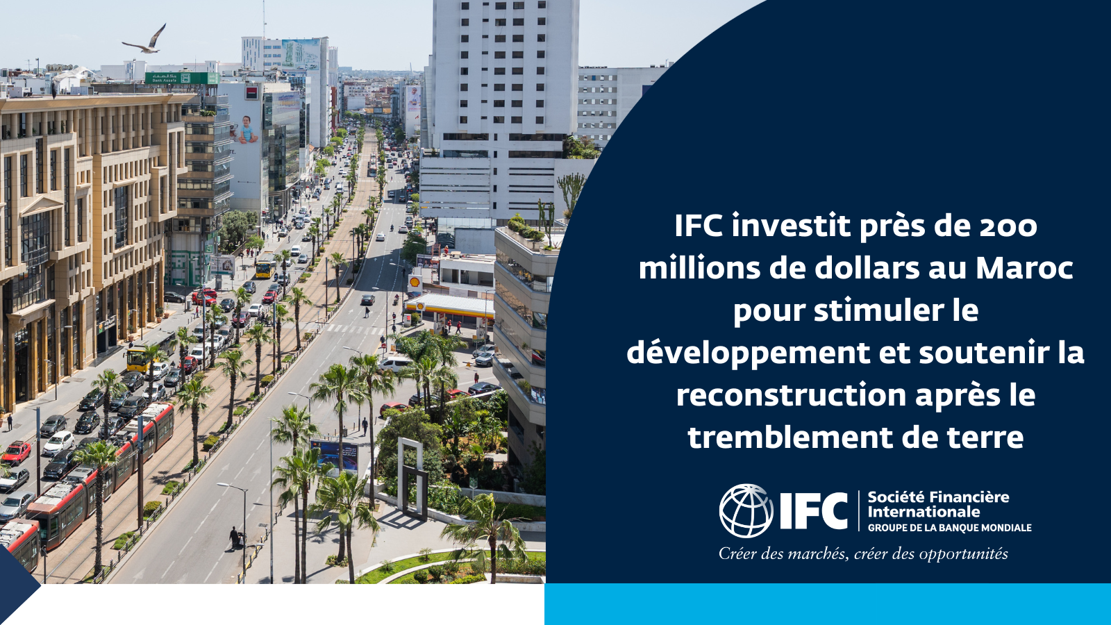 IFC a par ailleurs annoncé qu'elle fournira des services-conseils, en collaboration avec le Centre régional d'Investissement (CRI) de la région de Marrakech-Safi, afin d'évaluer l'impact du tremblement de terre sur l'économie locale et de prendre les mesures adaptées pour soutenir les entreprises touchées.