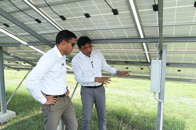 Raj Shah sur le site d'un mini-réseau solaire à Bihar, en Inde. Crédit photo : Fondation Rockefeller (2019)