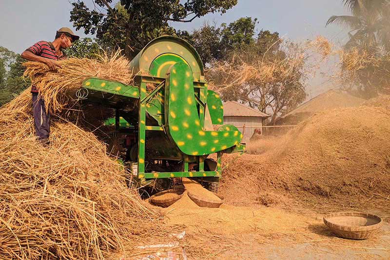 Une machine à battre le riz au Bangladesh. Crédit photo : Muhammad Ashaduzzaman/Shutterstock.