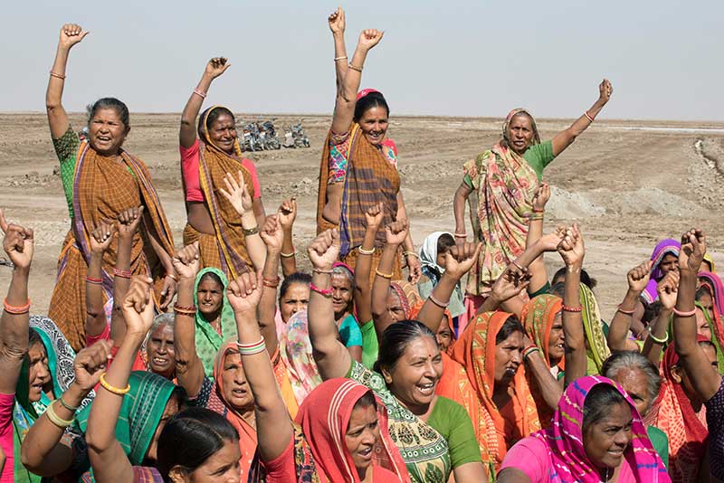 小カッチ湿地でのIFCのイベントと現地訪問を締めくくる結びの挨拶を聞き、歓喜の声をあげる塩田で働く人々。