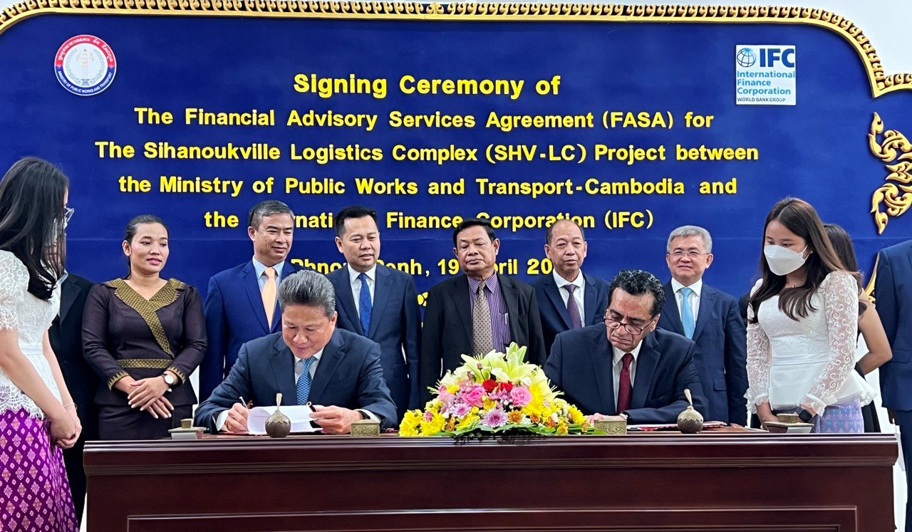 ភ្នំពេញ ប្រទេសកម្ពុជា ថ្ងៃទី ១៩ ខែមេសា ឆ្នាំ ២០២៣ — ដើម្បីជួយកម្ពុជាឱ្យសម្រេចបាននូវ គោលបំណង របស់ខ្លួន ដើម្បីក្លាយជាមជ្ឈមណ្ឌលភស្តុភារកម្មថ្មីនៅក្នុងតំបន់អាស៊ីអាគ្នេយ៍ IFC បានចុះ កិច្ចព្រមព្រៀងថ្មី មួយ ជាមួយក្រសួងសាធារណការ និងដឹកជញ្ជូន ដើម្បីបង្កើតភាពជាដៃគូរវាងវិស័យសាធារណ: និងវិស័យឯកជន (PPP) សម្រាប់មជ្ឈមណ្ឌលភស្តុភារកម្មមួយក្នុងខេត្តព្រះសីហនុ។