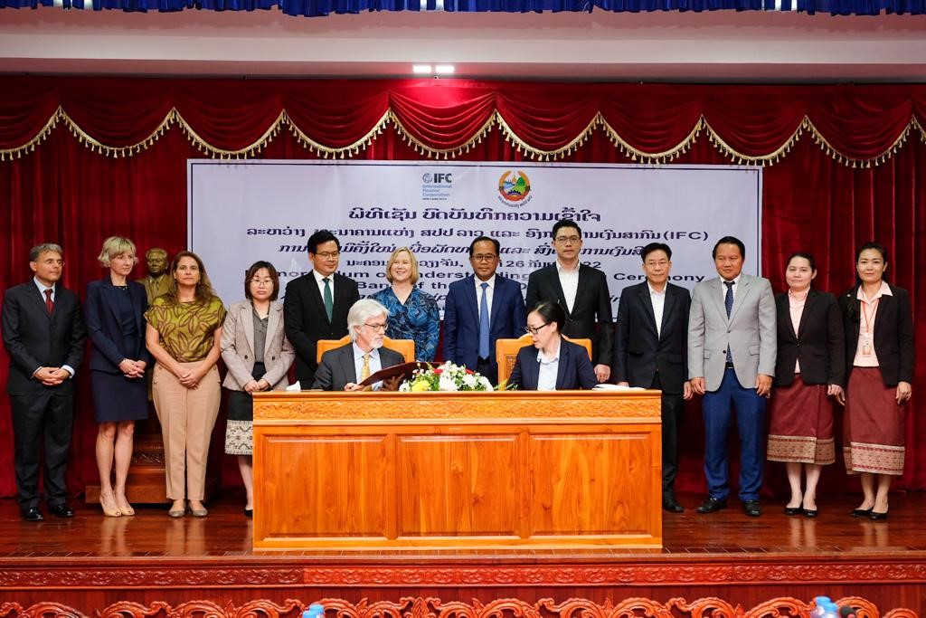 ນະຄອນຫຼວງວຽງຈັນ, ສປປ ລາວ, 26 ກັນຍາ 2022 - ຍ້ອນວ່າ ສປປ ລາວ ຕ້ອງການຊັບພະຍາກອນໃນການແກ້ໄຂຜົນກະທົບຂອງດິນຟ້າ ອາກາດ ແລະ ບັນລຸເປົ້າໝາຍ ປ່ອຍທາດອາຍເຮືອນແກ້ວສຸດທິເປັນສູນ ພາຍໃນປີ 2050, ອົງການການເງິນສາກົນ ຫຼື ອົງການ IFC ແລະ ທະນາຄານແຫ່ງ ສປປ ລາວ ໄດ້ ເຊັນບົດບັນທຶກຄວາມເຂົ້າໃຈ (MoU) ເພື່ອເພີ່ມທະວີການສະໜອງທຶນເຂົ້າໃນບັນດາໂຄງການທີ່ເປັນມິດ ຕໍ່ດິນຟ້າອາກາດ. ບາດກ້າວດັ່ງກ່າວ ຈະຊ່ວຍສ້າງ ຕະຫຼາດການເງິນສີຂຽວ, ປົດລ໋ອກທ່າແຮງແຫຼ່ງທຶນໃຫ້ກັບ ກິດຈະການທຸລະກິດທີ່ເອົາໃຈໃສ່ ເລື່ອງດິນຟ້າອາກາດ ແລະ ເອື້ອອໍານວຍໃຫ້ ລາວ ສາມາດບັນລຸຕາມເສັ້ນທາງການເຕີບໂຕທີ່ຍືນຍົງ ແລະ ຄວາມເປັນກາງທາງກາກບອນ.