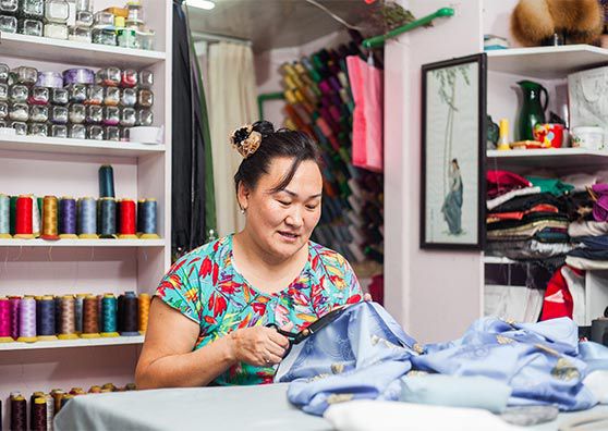 Бүхий л өнгийн эгнүүлж тавьсан дамартай утас, боодол даавуунууд нь Лхагвацэндийн Булганы оёдлын цехийг өнгө алаглан чимнэ. Тэрээр захиалгаа хоцроохгүйн тулд хайч, зүүгээ ойр байлгаж, нэг ч хором дэмий үрэхгүй. Булган Монголын хамгийн том зах болох Нарантуул худалдааны төвийн худалдаачдад зориулан үндэсний хувцас оёдог.